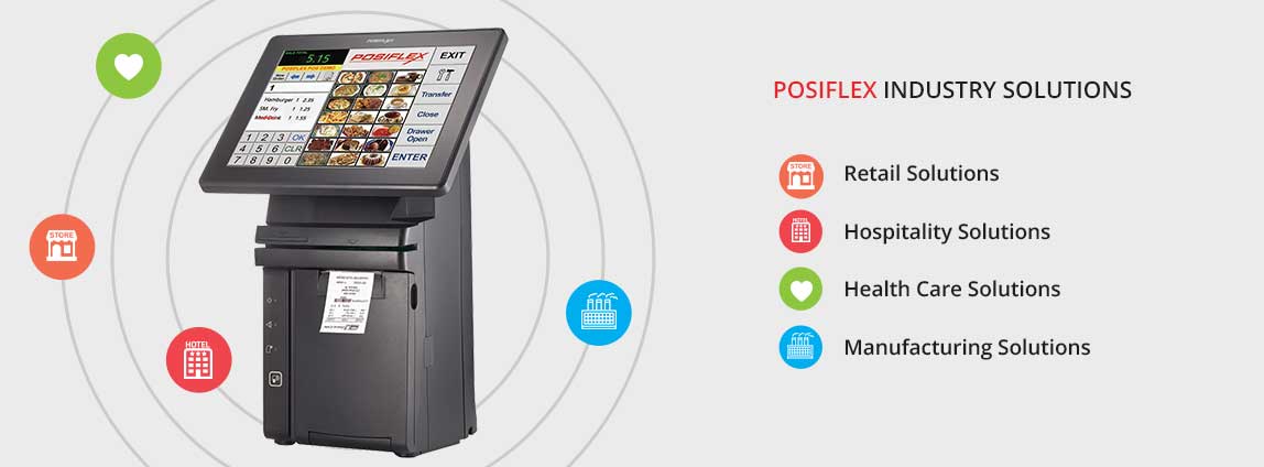 Posiflex Industry Solutions Healthcare Hospitals, Clinics, Gymnasiums Learn More… Hospitality Restaurant, QSR, Resort / Hotels Learn More… Manufacturing WIP, Touch Monitors Learn More… Retail Modern Retail, Kirana Stores/Mom & Pop Stores, Hyper Market Learn More…